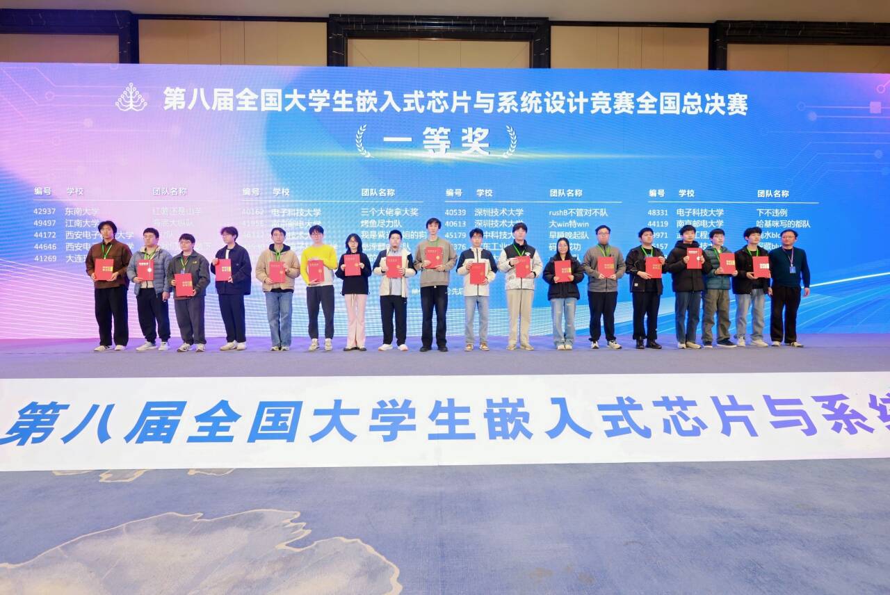11月30日,2025年全國大學生嵌入式芯片與系統設計競賽-芯片設計賽道決賽與FPGA創新設計賽道決賽在南京落下帷幕。南京郵電大學參賽隊獲全國一等獎8項(芯片設計賽道1項,FPGA賽道7項),國家一等獎數位列全國高校第二名、其中我院學生獲得國家一等獎4項,國家二等獎4項,國家三等獎5項。FPGA創新設計大賽是全國嵌入式芯片與系統設計競賽三個專項賽之一,全國大學生嵌入式芯片與系統設計競賽由中國電子教育學會主辦,旨在提高全國高校學生在嵌入式芯片及系統設計領域、可編程邏輯器件應用領域自主創新設計與工程實踐能力,培養具有創新思維、具備解決復雜工程問題能力且擁有團隊合作精神的優秀人才。序號學生姓名學號獲獎等級指導老師1于沛田B24021509國家一等獎郝學元、黃麗亞陶宸涵B240200282曹聞達B23020525國家一等獎郝學元、諶靜李澤B230200183陳奕帆B23090625國家一等獎郝學元、崔國印季子超B240208204胡鑫媛B23020503國家一等獎謝祖帥、郝學元王譯B23021409(撰稿:郝學元 編輯:徐偉 審核:諶靜)